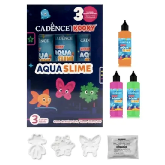 Çocukların hem eğlenip hem de yaratıcılıklarını geliştirebileceği KOOKY Aqua Slime Kendin Yap Seti ile tanışın! Her kutuda 3 farklı renkte (90 ml) slime boyası, sihirli toz ve şekilli kalıplar yer alıyor. Su ile buluşan bu sihirli set, çocukların hayal gücünü renklendiriyor!